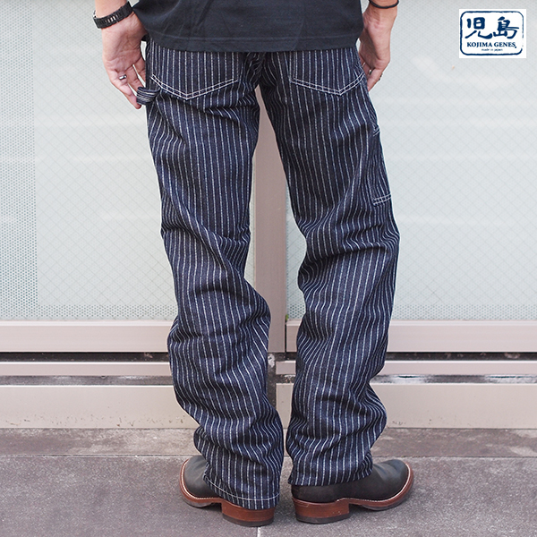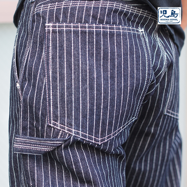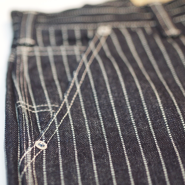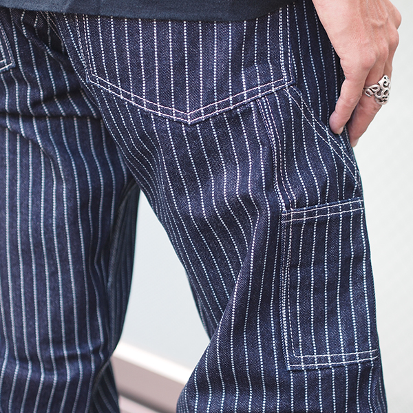 厚手の13ozデニムにクラシックなウォバッシュストライプ柄を施したペインターパンツ。