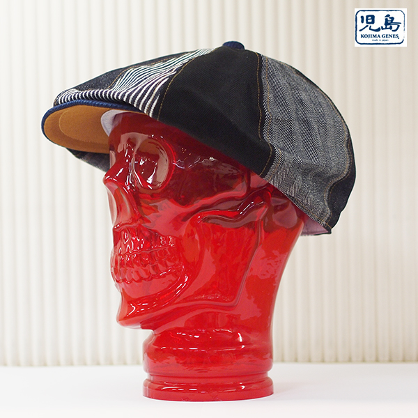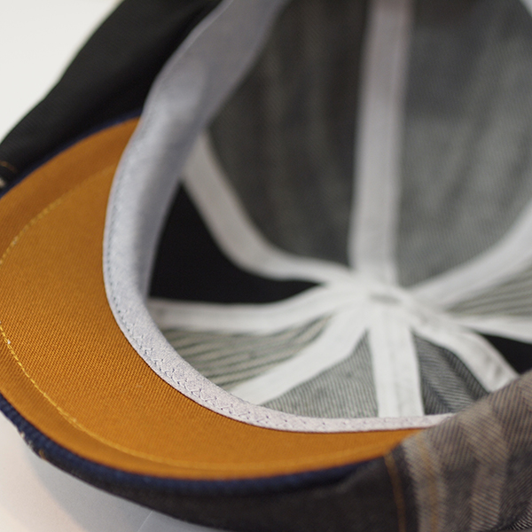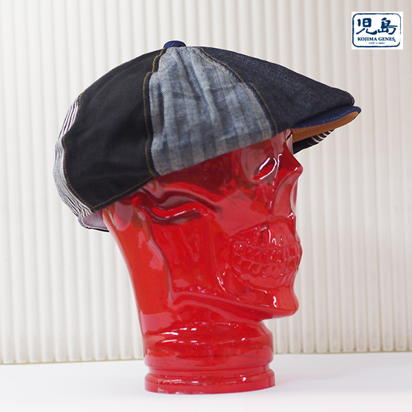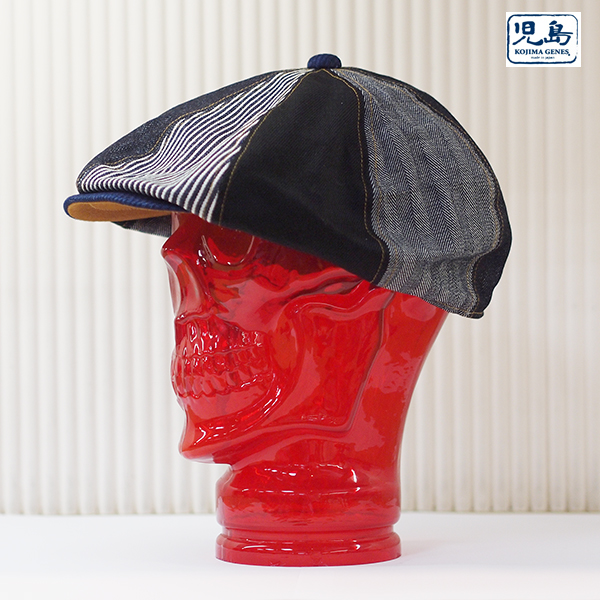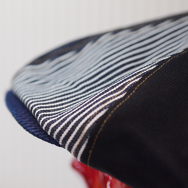 デニム生地とヘリンボーン生地、ヒッコリー生地のマルチデザインが印象的なキャスケットです。