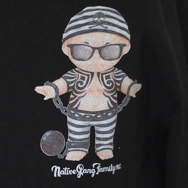 フロント胸に囚人ベイビーをインクジェットプリントで。