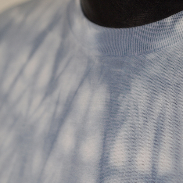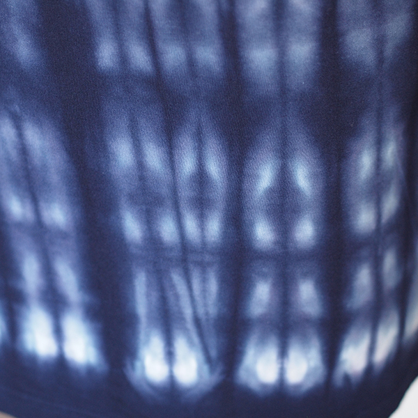 ボディはネイビー系とグレー系に縦染めを施し、 一点一点手作業での染色により、それぞれの色の出方が異なるのも魅力です。縦に染めることでとても印象的な一着に仕上がりました。
