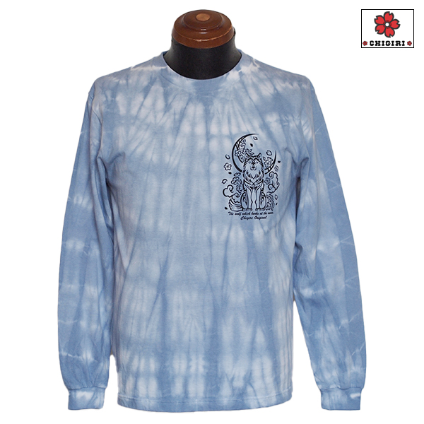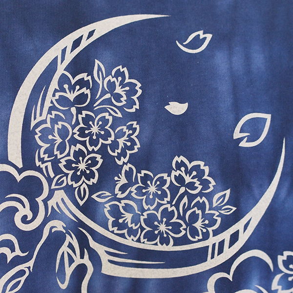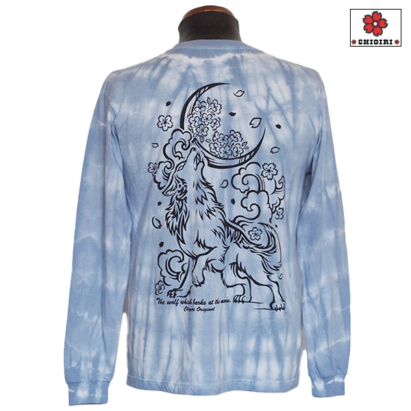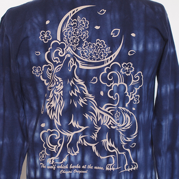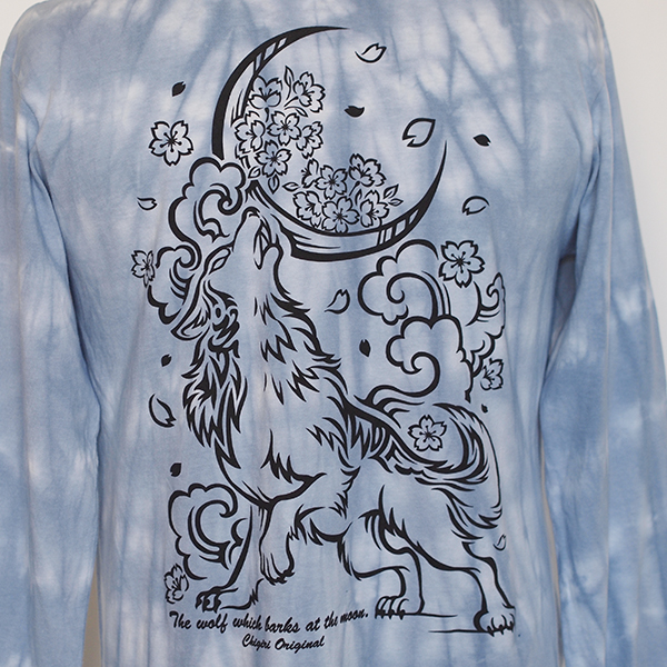 トライバル柄で毛並みを表現したオオカミと、三日月や桜を合わせ、和柄の枠にとらわれない独特な雰囲気を持つデザイン。