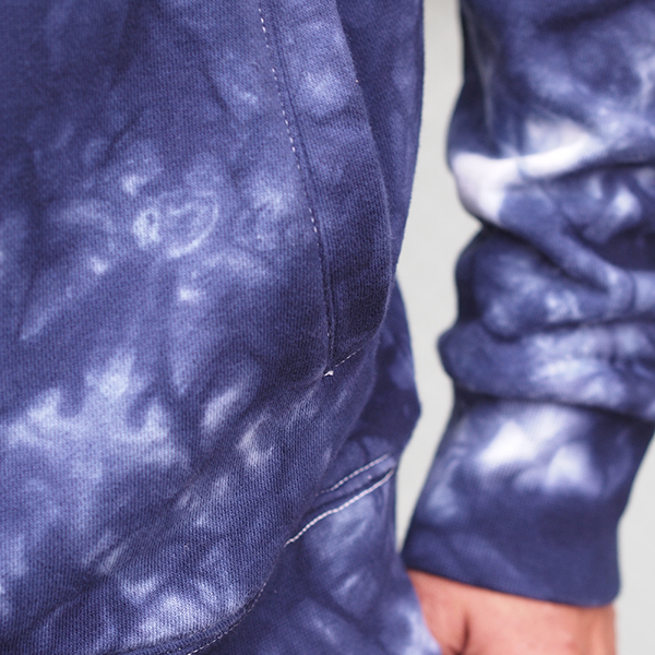 一点一点手作業で染色を施し、それぞれに色の出方が異なる絞り染めのアイテムとなっています。