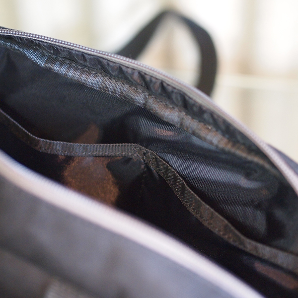 ファスナーは大きく開くので、出し入れもしやすく使いやすいショルダーです。