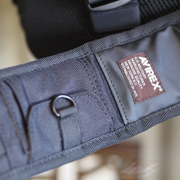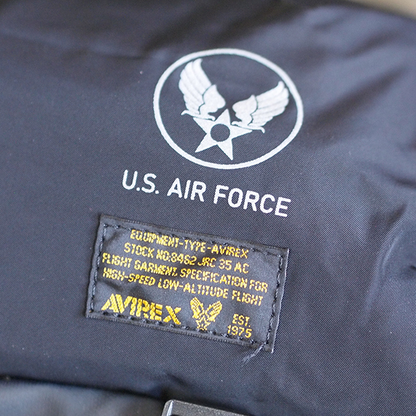 AVIREXの象徴であるイーグルマークのエンブレムや織りネームを