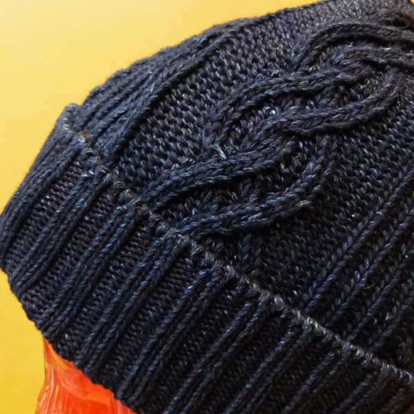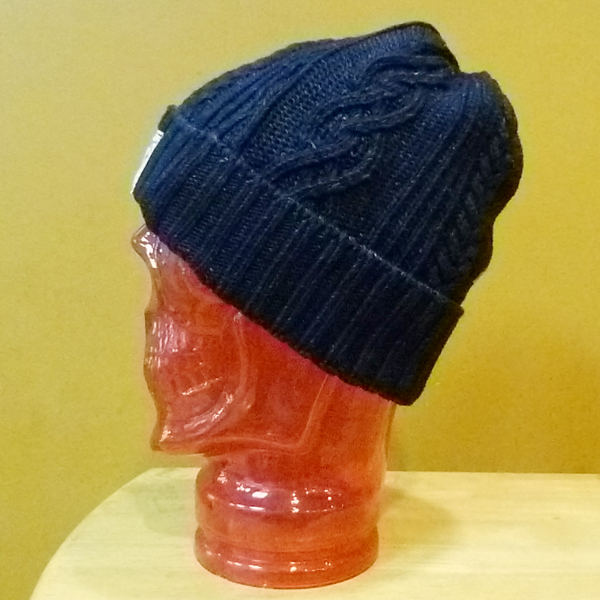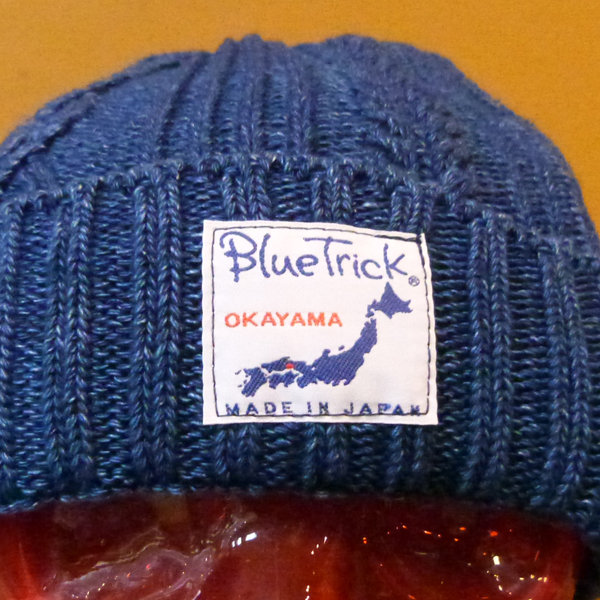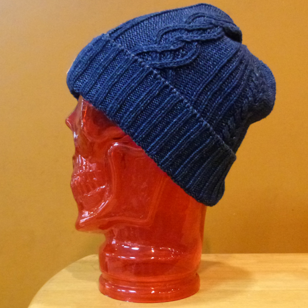 インディゴ染めのニットキャップ。