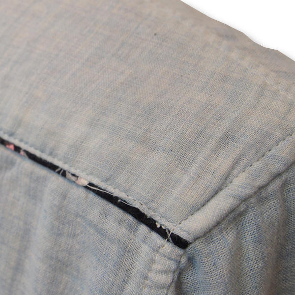 薄いブルーが涼しげでとてもきれいな色合いです。ガーゼ素材ととても良くマッチして、柔らかい雰囲気に仕上がっています。