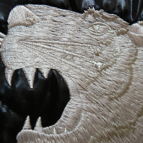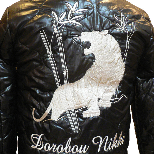 泥棒日記はシンプルに、白一色の刺繍で虎をデザイン。
