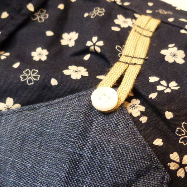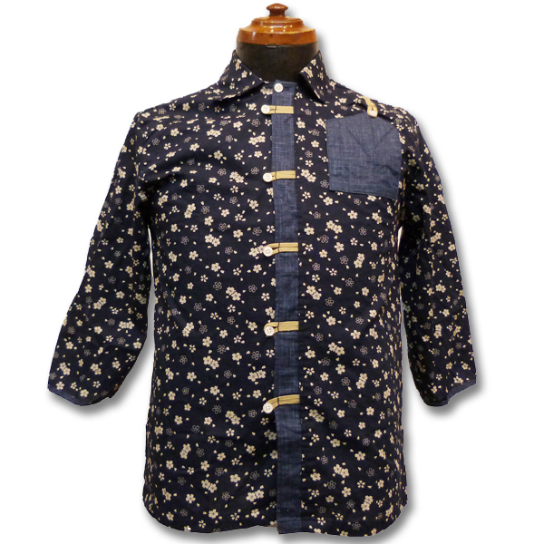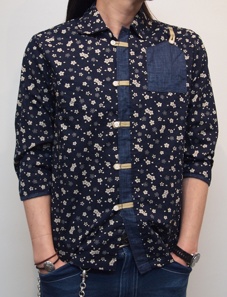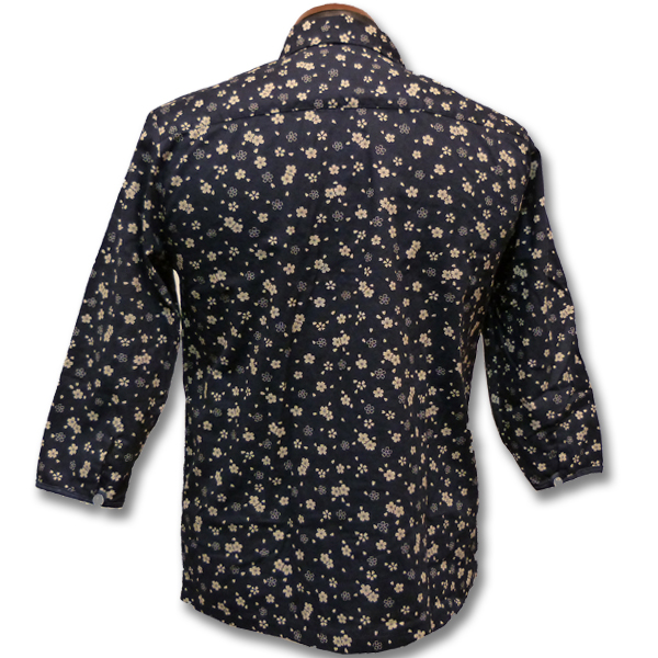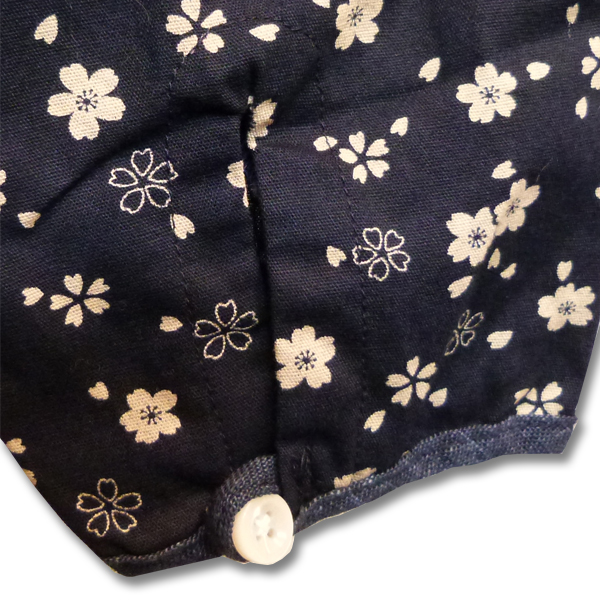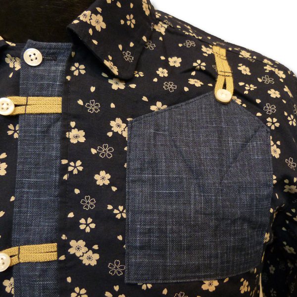 ブラックは桜柄の総柄。前立てと胸ポケットにはネイビー地で切り替えし、ポイントに。