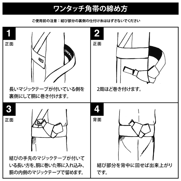 帯は簡易的に着付けができるいよう、ワンタッチの角帯仕様。初心者も安心です。