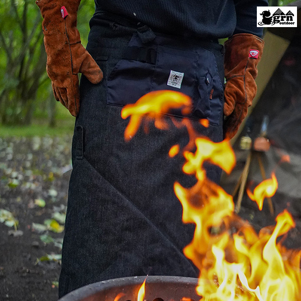 穴をあけたくないパンツを焚き火の火の粉から守ってくれます。