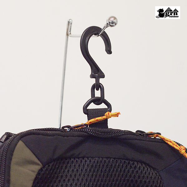 ハンガーフックもついているので、テントにかけたり、宿の部屋にかけたりすると、出し入れも便利です。