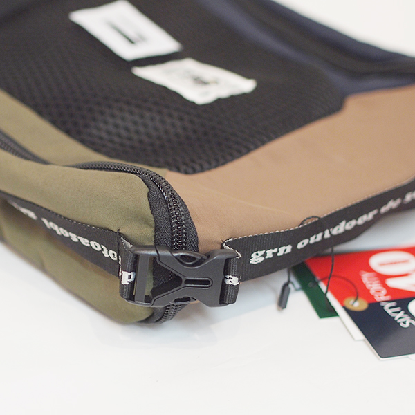 素材にも拘り、grn outdoorのギアシリーズは全てオリジナルの60/40クロスを使用をメインファブリックにしており、