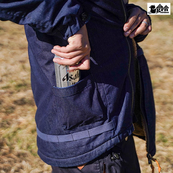 両サイドの腰ポケットは350ml缶がぴったり入り、
