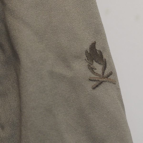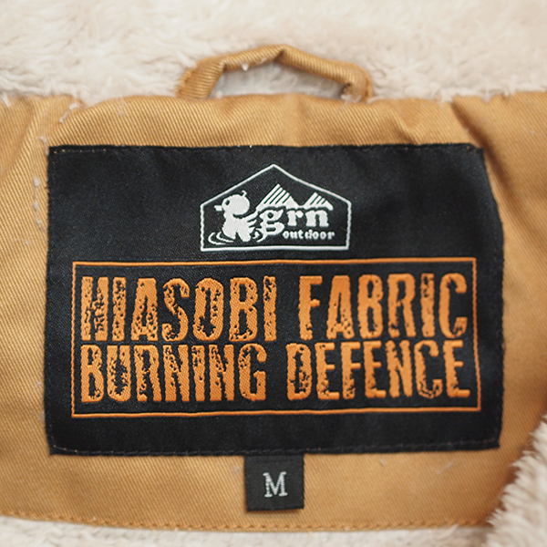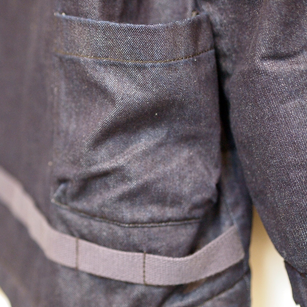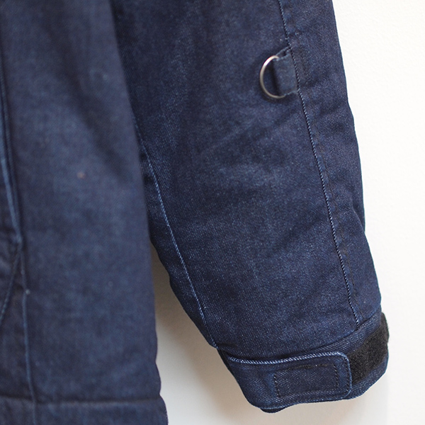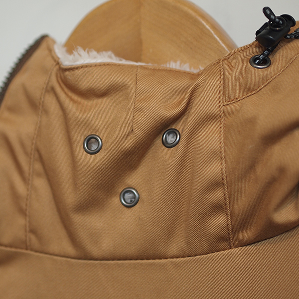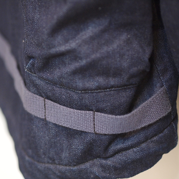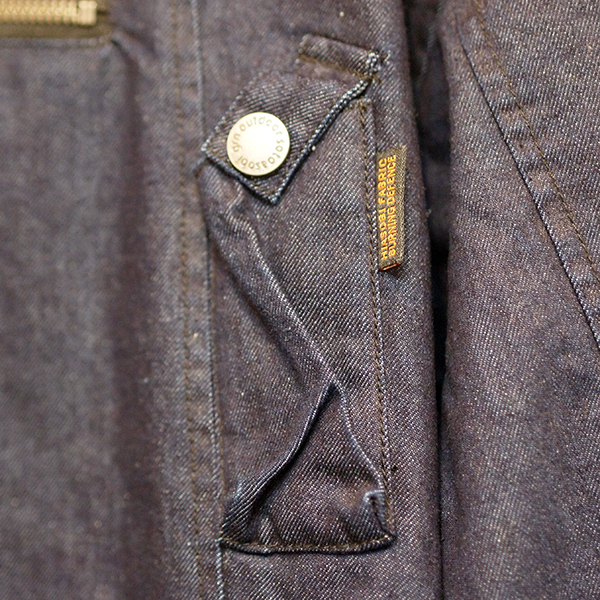 味のあるコットンツイル素材に「難燃加工」を施したオリジナル生地を使用したジャケット。