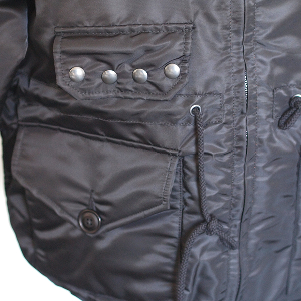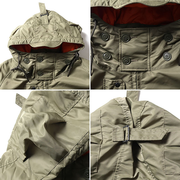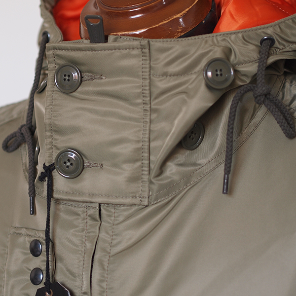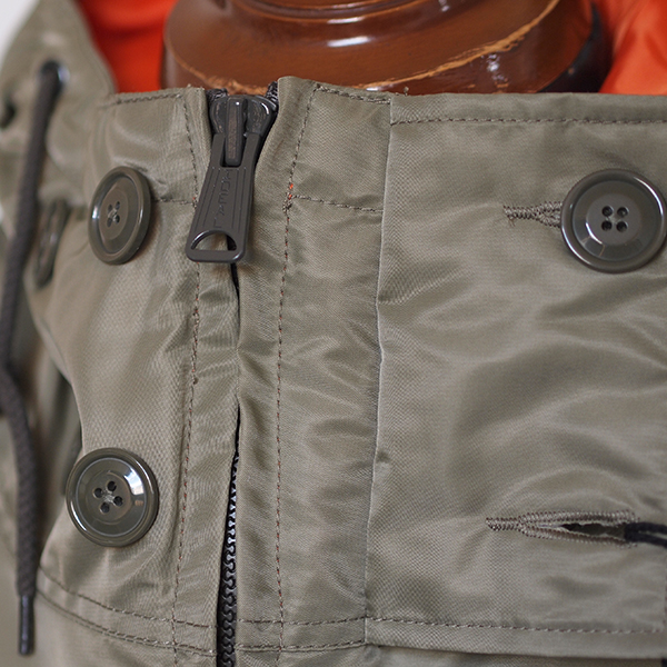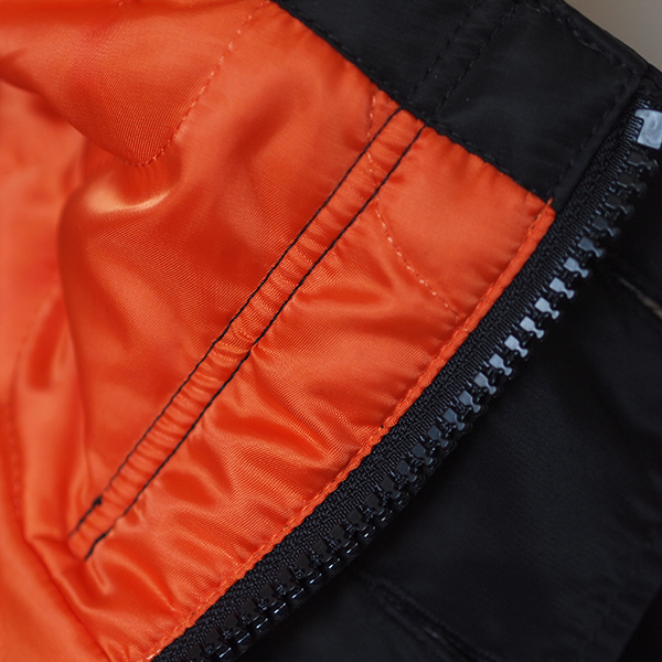 裏地にはレスキューオレンジでミリタリー感満載の一着です。