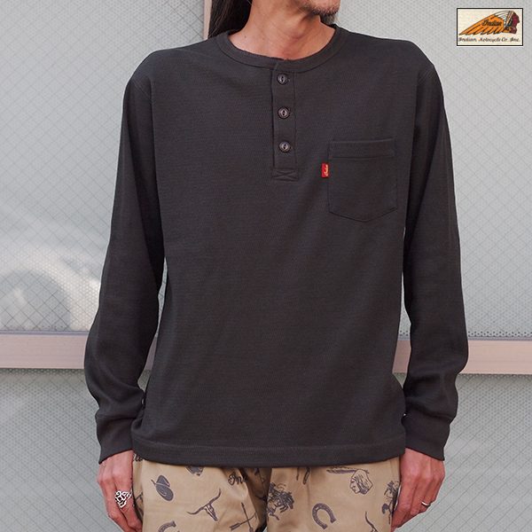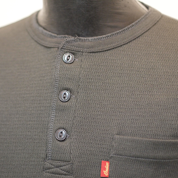 Vゾーンに変化をつけるヘンリーネックは、コーディネートに映えるアイテムです。