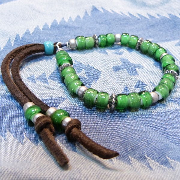アンティーク風のビーズを使用したブレスレット。カラ―はレッドとグリーンの2色コーディネートのアクセントに。男女共にオススメです。