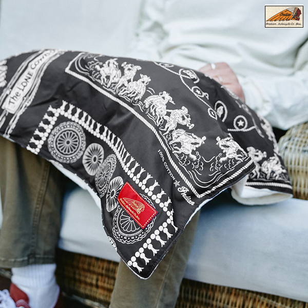 インディアンらしくネイティブアメリカンテイストのテキスタイルにマイクロフリースを合わせたブランケット。