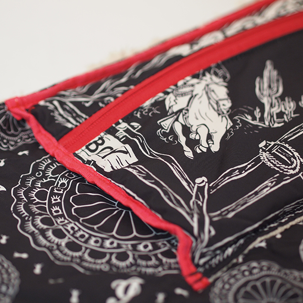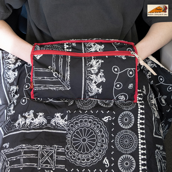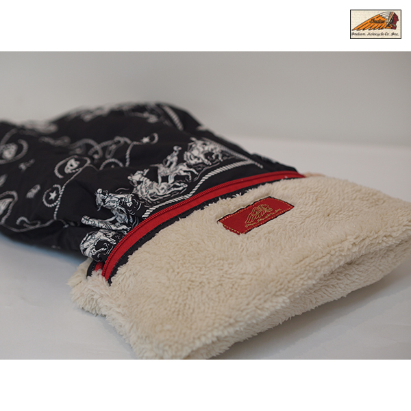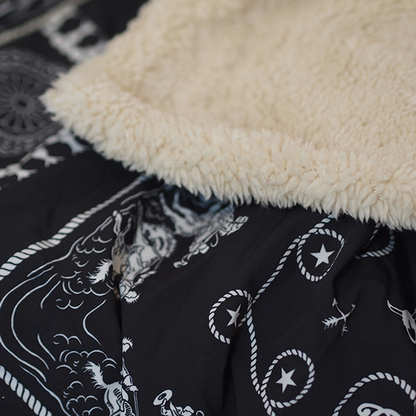 INDIANらしいデザインのオリジナルプリントのテキスタイルに軽くて温かいラビットフリースを合わせたブランケット。