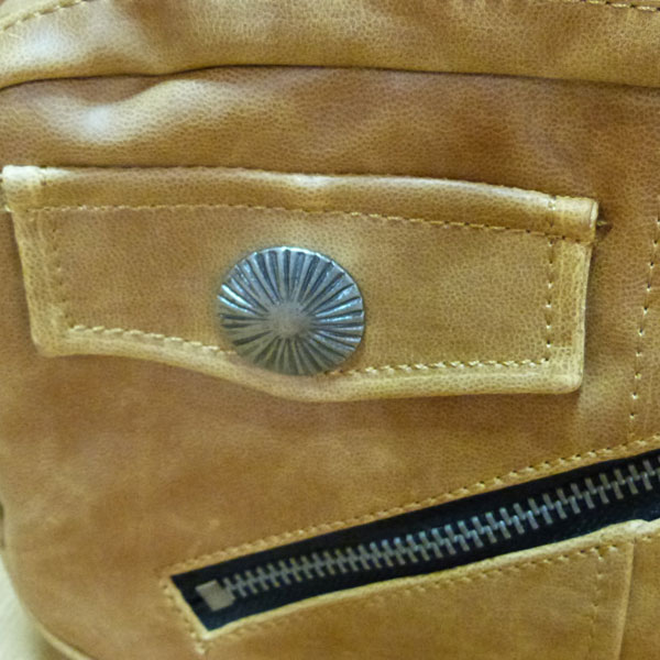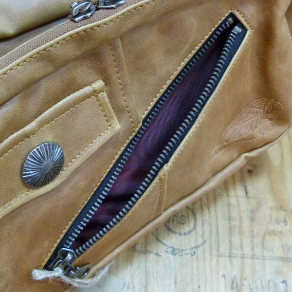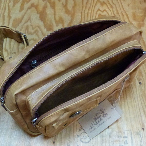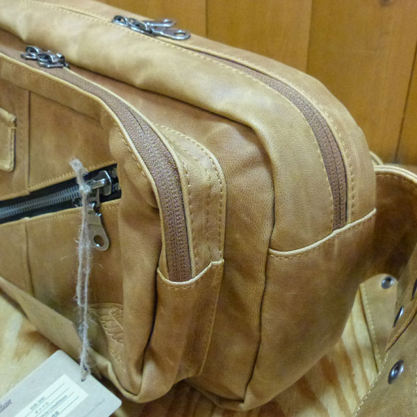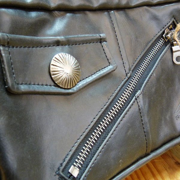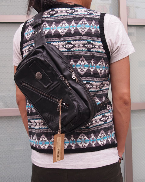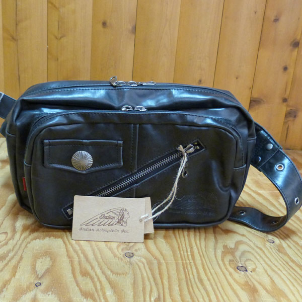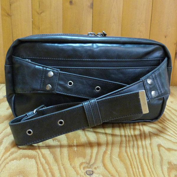 合皮のウエストバック。ベルトの長さ調節で、斜めがけにもできます。レザーに限りなく近い素材感。