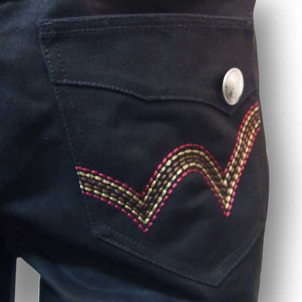 デザインは刺繍を使い、バックポケットにもステッチを施し