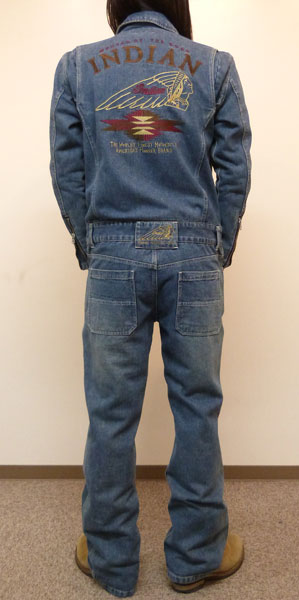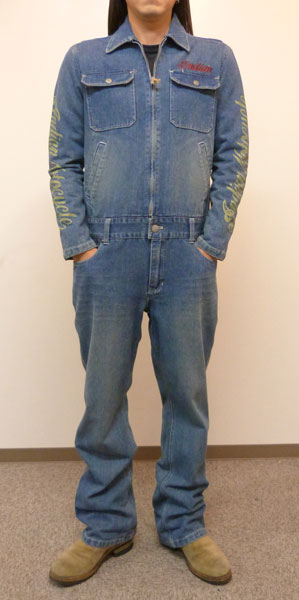 丈夫なデニム生地を使用した、インディゴのつなぎです。