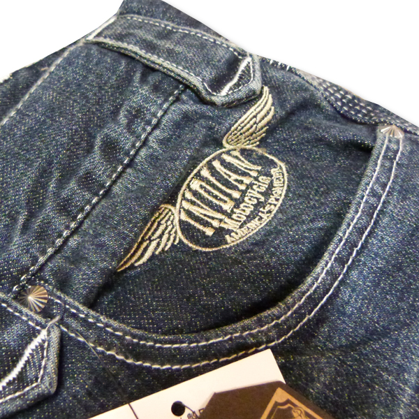 フロント左ポケットにはロゴの刺繍など、細かいところまでこだわったデニムです。