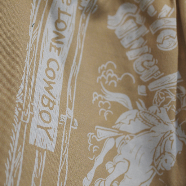 こちらの商品は全面プリント製品となっており、洗濯・着用時の摩擦等による色落ち、色移りが起こる可能性がございます。洗濯の際は「蛍光増白剤」、「漂白剤」が入っていない洗剤をご使用していただき、裏返しで洗濯ネットに入れ、洗濯後は陰干しをしてください。