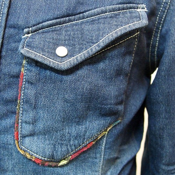 ストレッチがきいているデニム素材のウエスタンシャツ。かっちりとしたつくりですが伸縮性のある素材によって、着心地の良いものになっています。