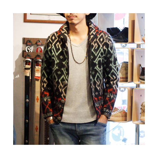 ネイティブ・アメリカンの伝統的なラグをモチーフにしたインディアンらしいデザインで、色合いも鮮やかです。