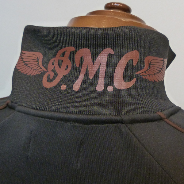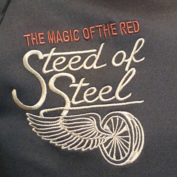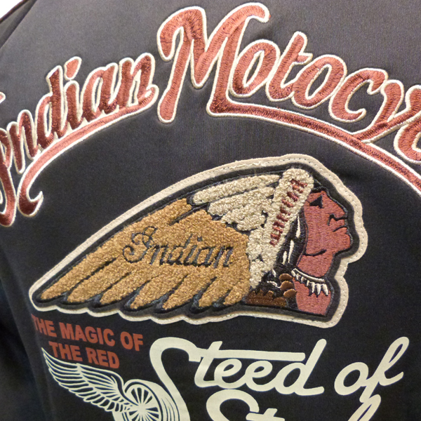 高級感のあるジャージ素材に、バックにはヘッドマークなど、刺繍でデザイン。刺繍の手法も多様で、プリントも合わせ、重厚感のある仕上がりになっています。