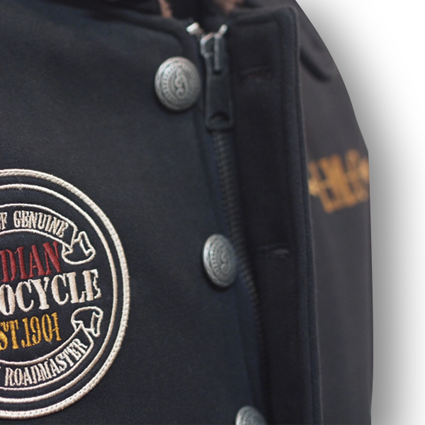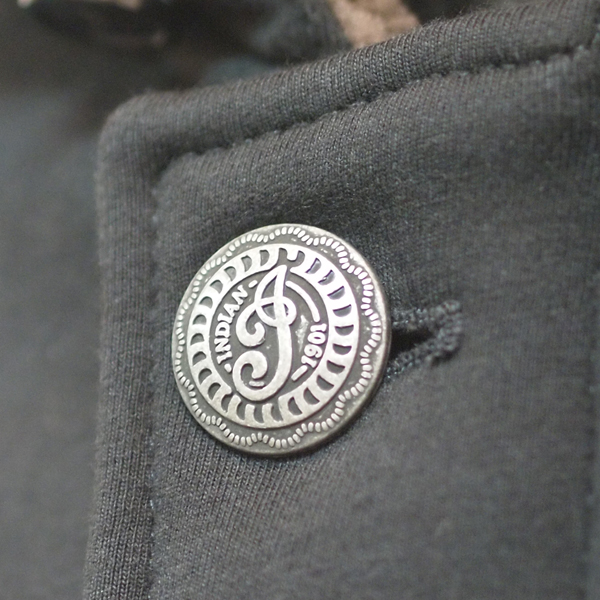 刺繍、プリント、ワッペンを贅沢に使い、ボタンにはINDIANロゴ刻印入りコンチョボタンを。ネイティブ感も楽しめる、充実した一着です。