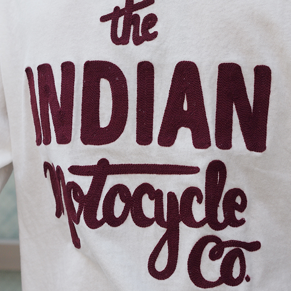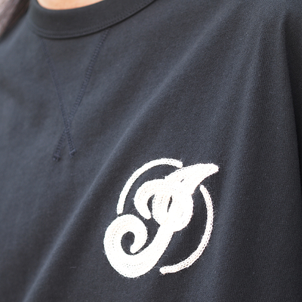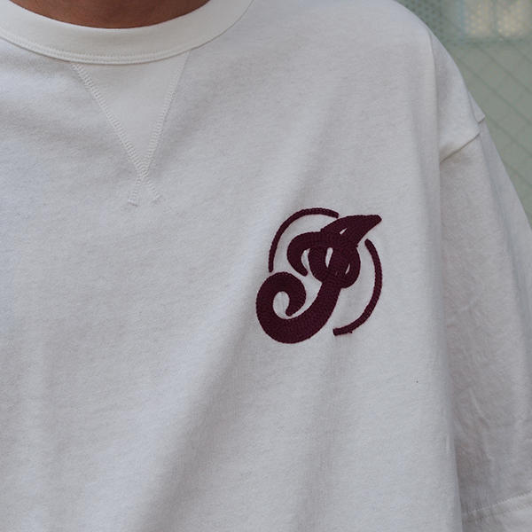 ボリュームのあるチェーン刺繍を施したヴィンテージテイストのTシャツ。ドライタッチでシャリ感のあるヘヴィーウエイトのタフな生地を使用。ゆったりしたリラックスサイズです。