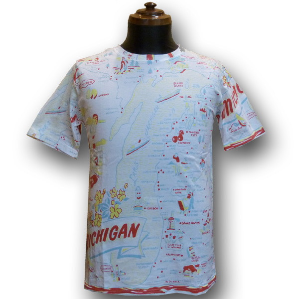 リサイクルコットン生地を使用したエコなTシャツ。各地のマップを楽しいイラストでプリント。レディースサイズからメンズサイズまで揃います。