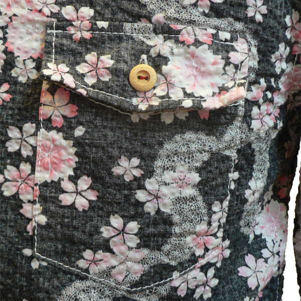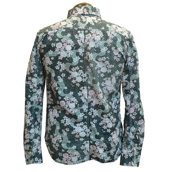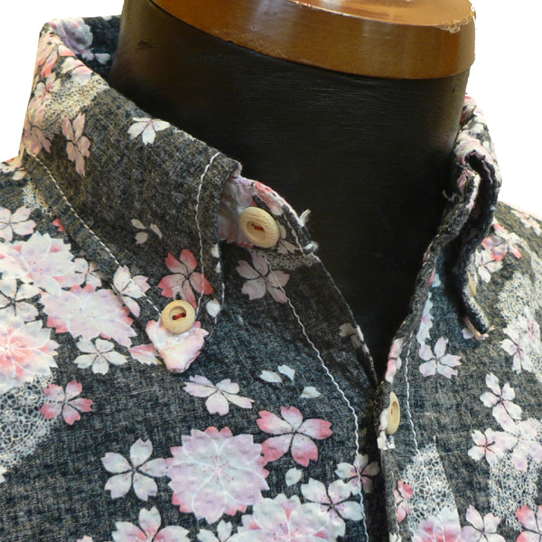 ■桜柄裏使いボタンダウンシャツ