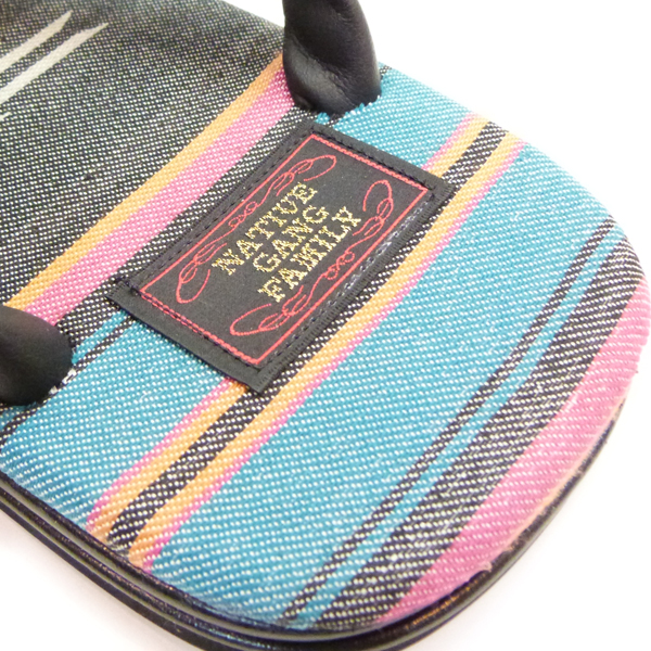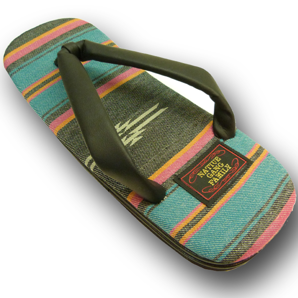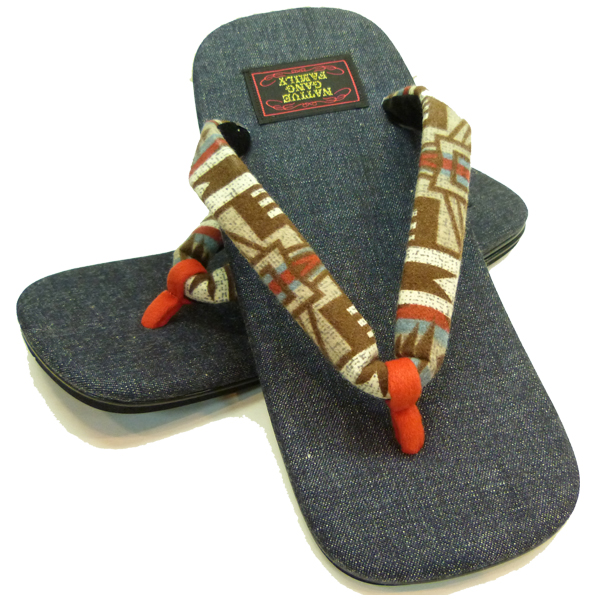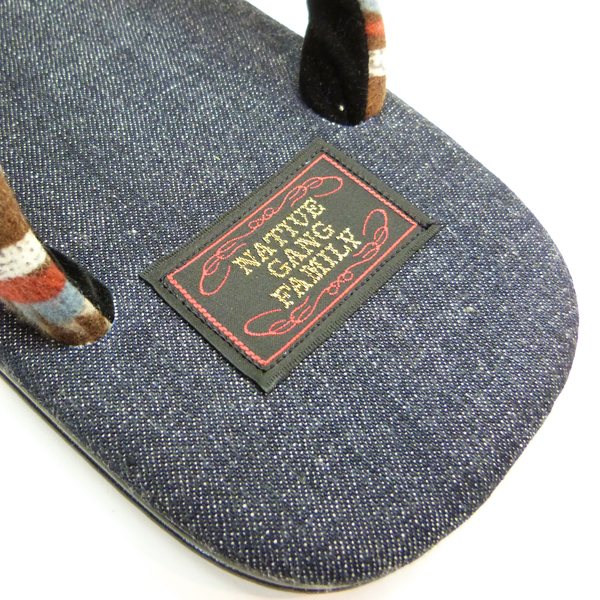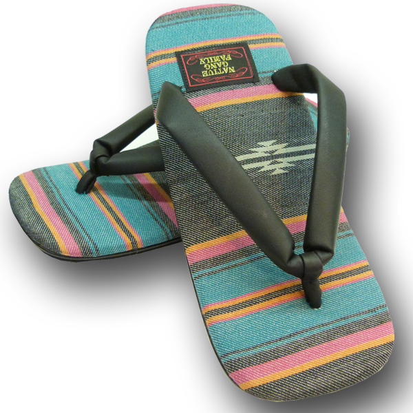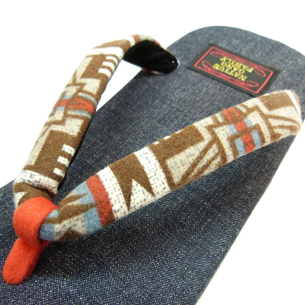 日本の履物「雪駄」にネイティブ柄生地を合わせ、アメカジと和がミックスされたデザインが魅力的です。
