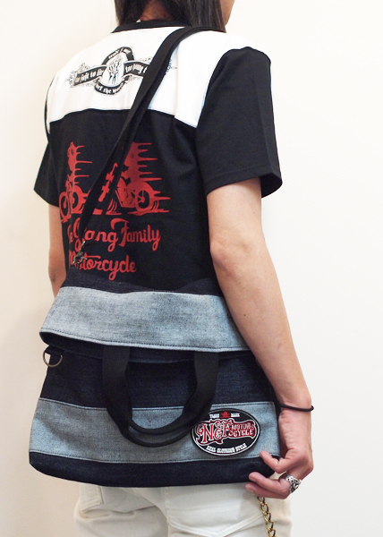 太目のボーダーが印象的な2wayのショルダーバック。