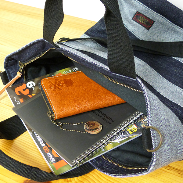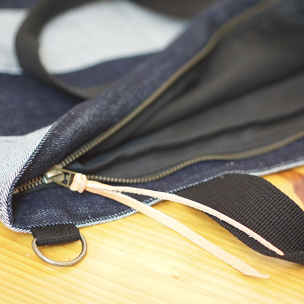 デニムは、デニム地の表と裏を使い分け、ボーダーにしています。
