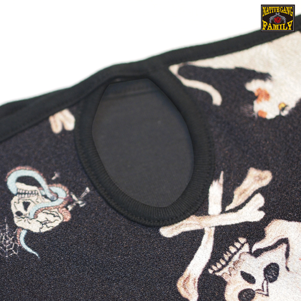 普通のネックウォーマーとしてはもちろん、両サイドについた耳用の穴に耳をかけるとマスクにもなります。裏面のポケットに抗菌素材のシートなどをいれて使えます。