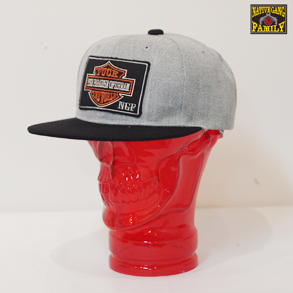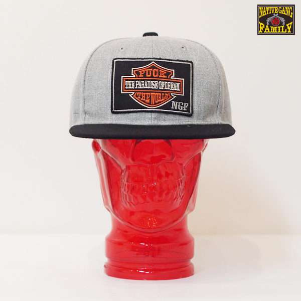 NGFオリジナル エンブレムワッペンを施したキャップ。