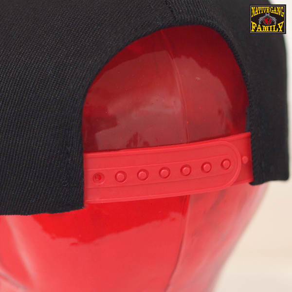 後のストッパーで頭部周りの大きさ調節が可能です。