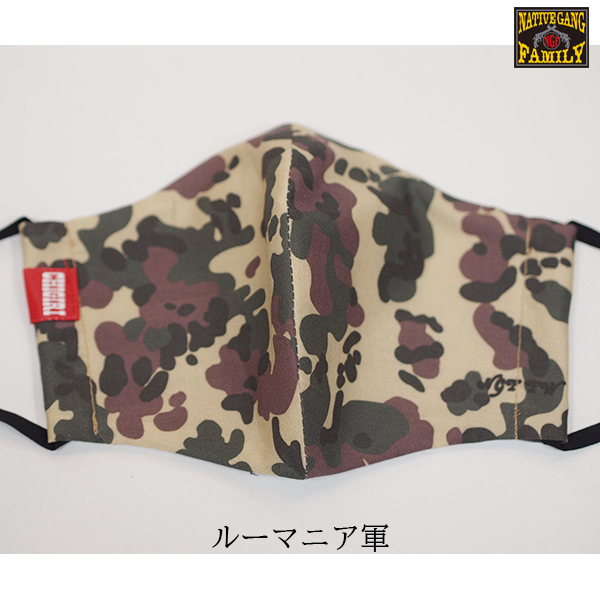 フランス軍のリザードカモ柄、ルーマニア軍の迷彩、東ドイツ軍のレインドロップの3柄。