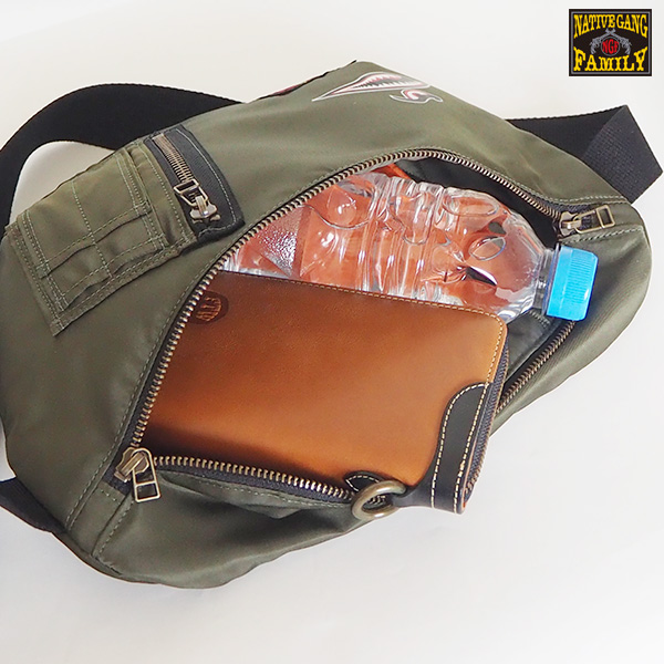 長財布、500ml ペットボトルも収納できるサイズです。