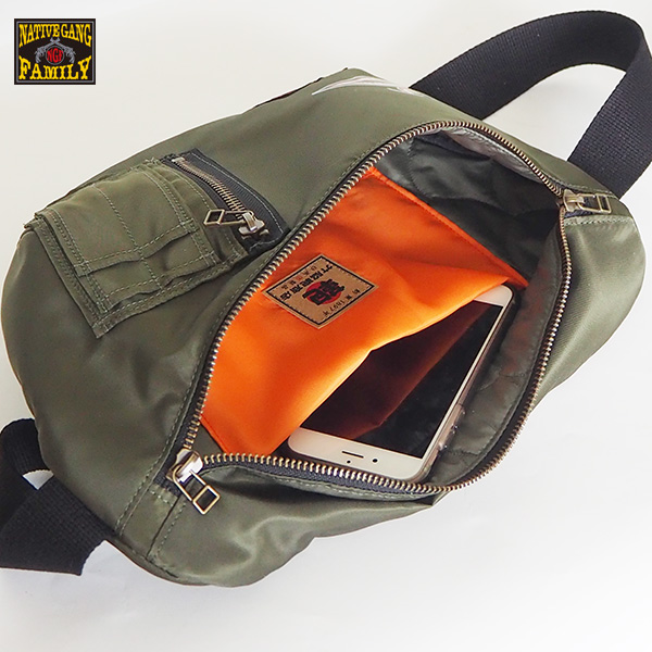 MA-1をイメージして作ったウエストバックです。