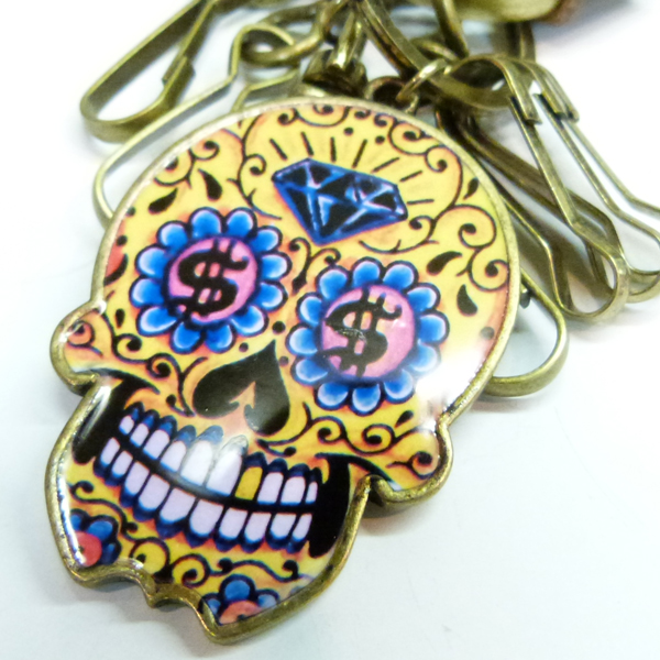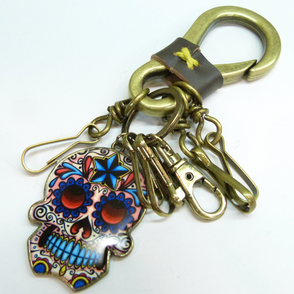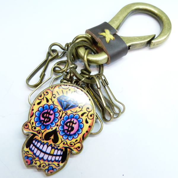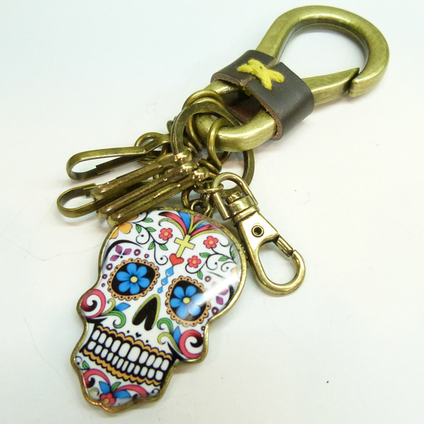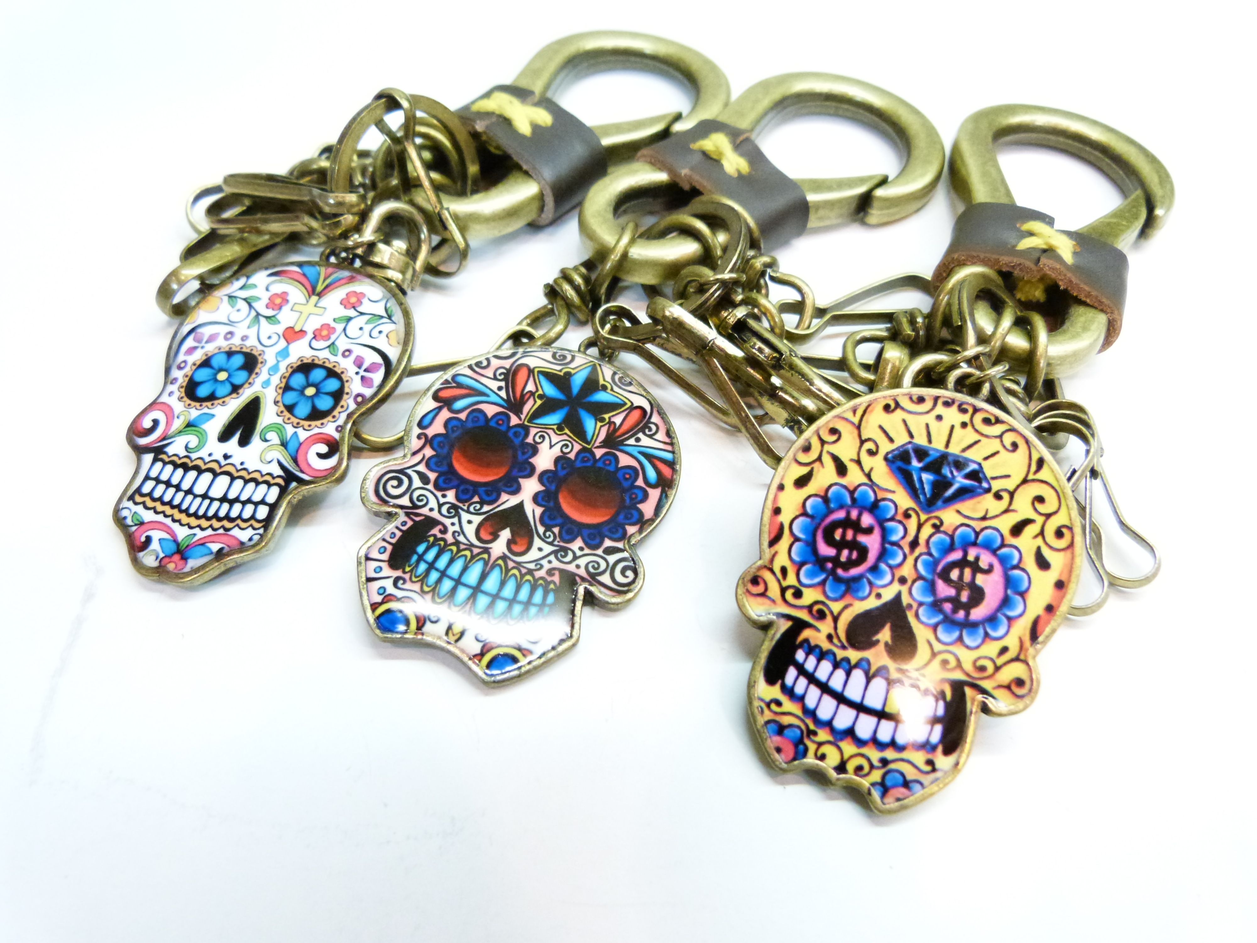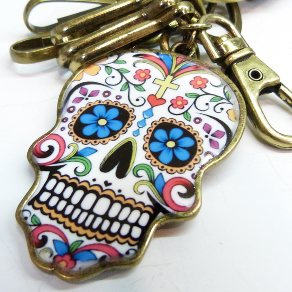 カラフルなメキシカンスカルチャームがついたフックキーホルダー。
