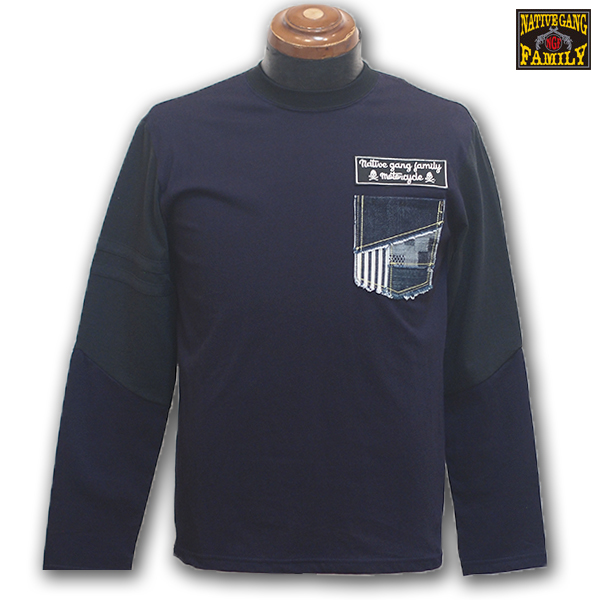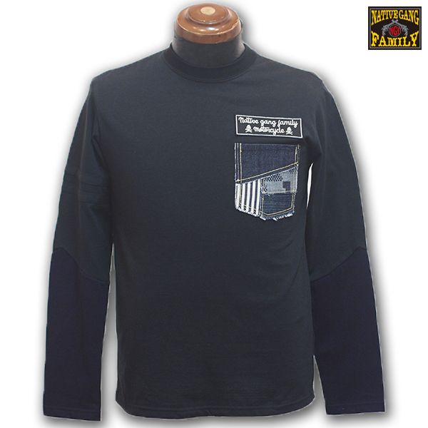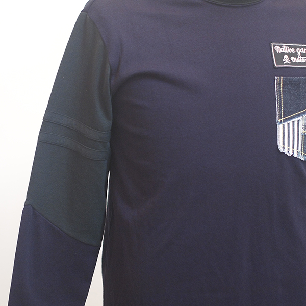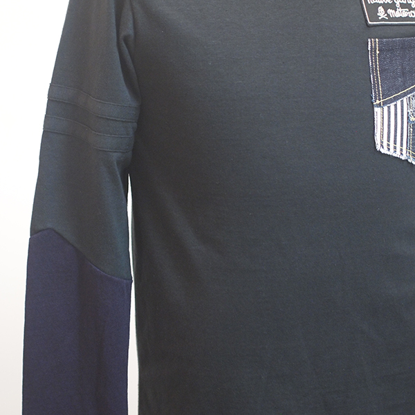 ブラックボディはひじから手首にかけてインディゴ生地で切替し、