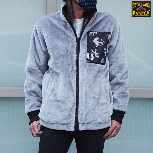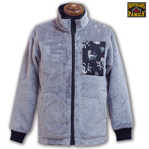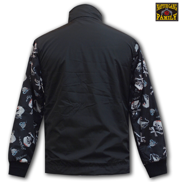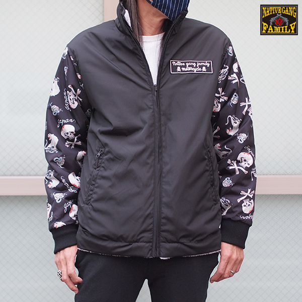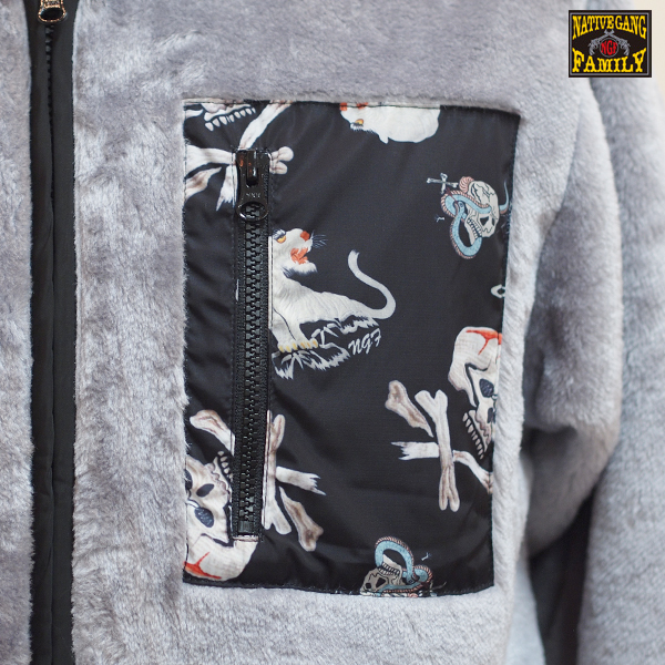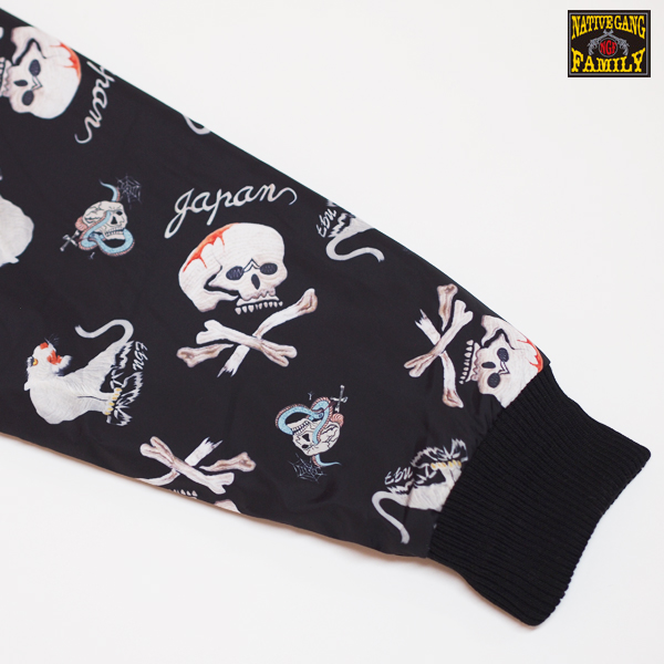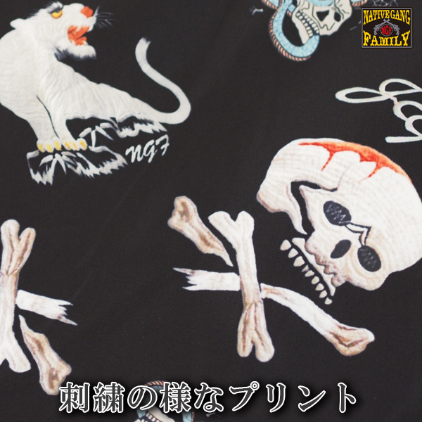 刺繍のようなスカルやタイガーをランダムに配置したデザインを
