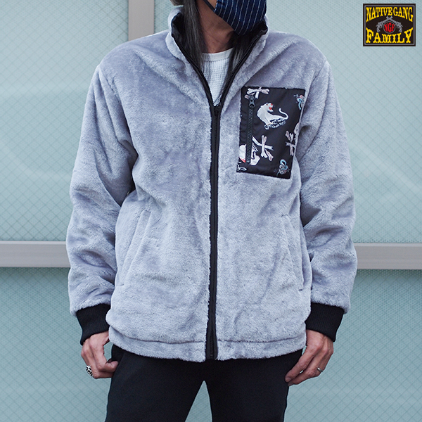 リバーシブルのボアジャケット。