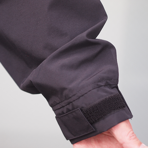 気軽に羽織れる一重生地でありながら、比翼付きのフロントファスナーや、裾のドローコードなどが付いているので、防寒性も兼ね備えています。