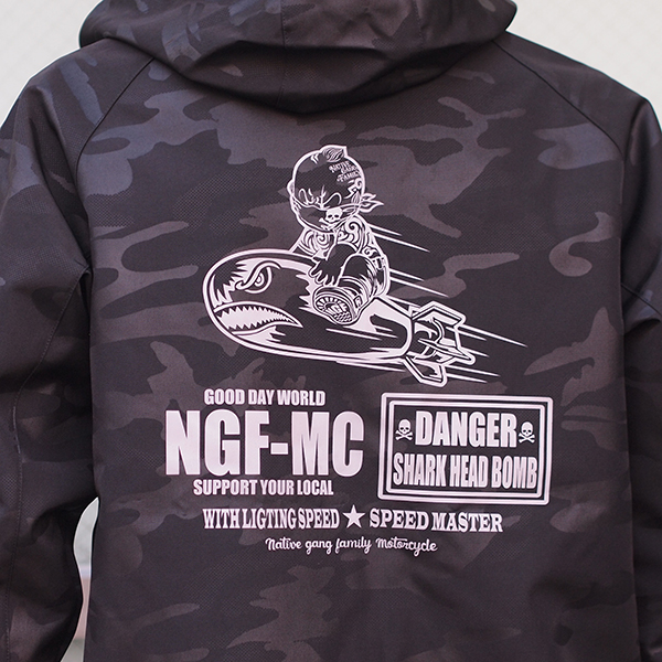 シャークフェイスとタトゥーベイビーを合わせたユニークなデザイン。